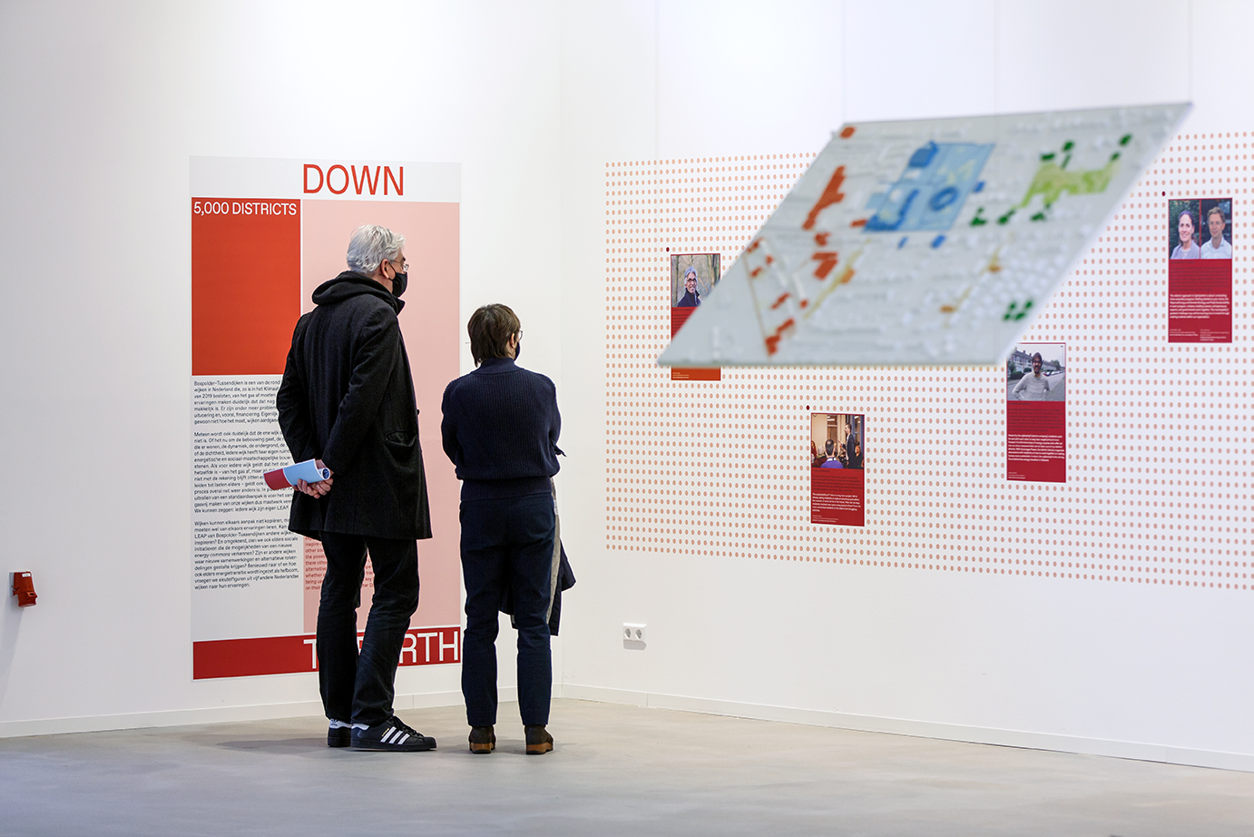 In 2020 and 2021 IABR–DOWN TO EARTH asks: Where can we land? Can we re-settle on planet Earth, as it were, in a sustainable balance with other lifeforms and one with nature? Can we, as philosopher Bruno Latour puts it, redesign our living environments ‘as that on which a terrestrial depends’ and always ask ourselves ‘what other terrestrials also depend on it?’. The campaign and identity is based on the endless possibilities of a 5x5 grid. The use of colours refer to the two crucial topics of the biennale: energy (red) and water (blue).
